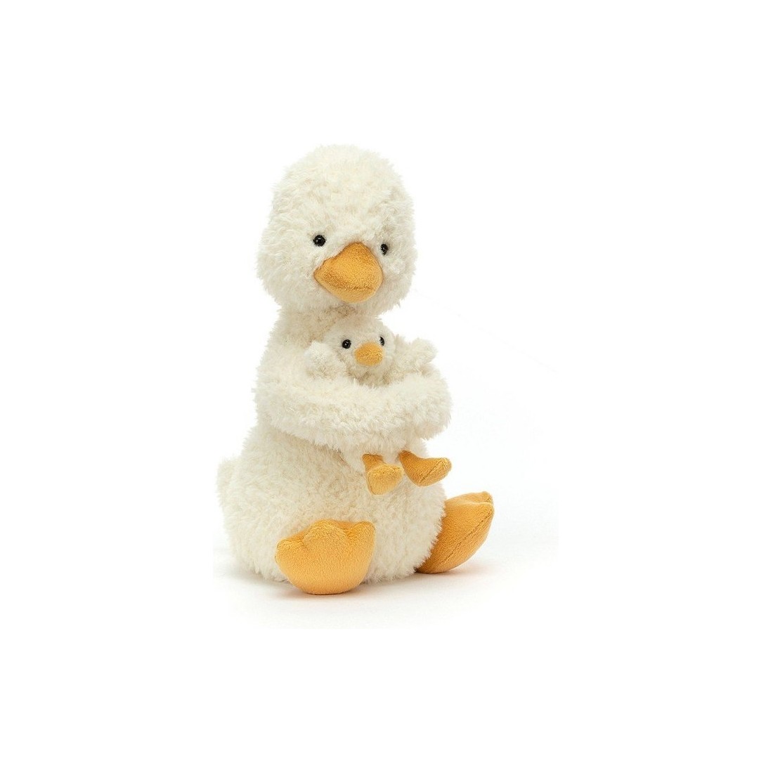 C'est l'heure du bain pour Huddles Duck — ce petit flapper a hâte d'éclabousser mais adore être soigné et tenu. Baissez ce bébé, doucement maintenant ! Avec sa fourrure froissée, ses becs de souci lumineux et ses pieds agités, cette paire fait tout le charme et est également amusante à blottir !