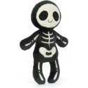 Il a une fourrure de réglisse avec beaucoup d'os flous. Ses yeux en suédine ont des bords brodés et de minuscules pupilles brillantes. Ce joyeux squelette claque, sans personne pour l'arrêter !
